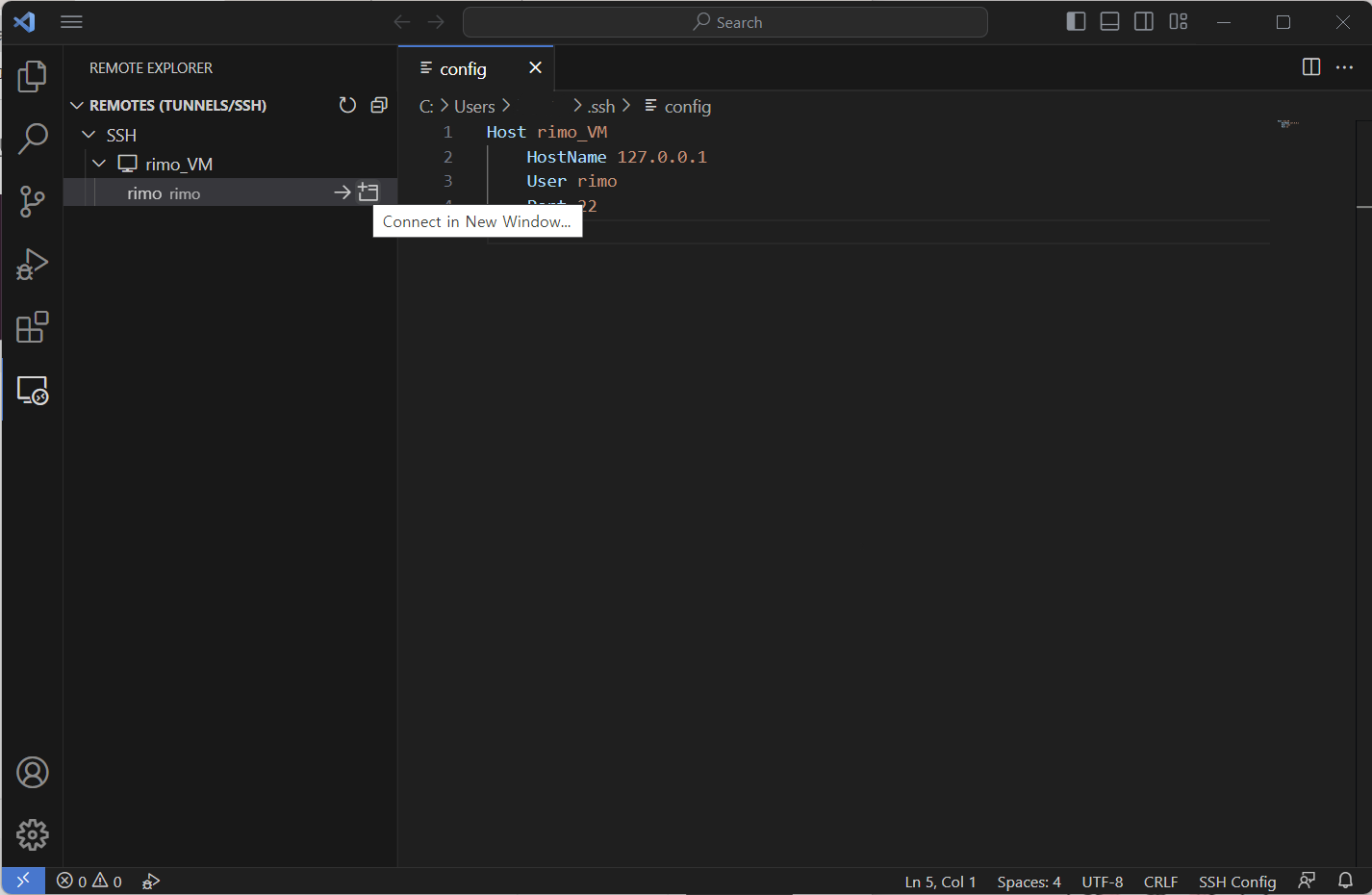 VScode로 돌아와 [Connect in New Window...] 를 눌러줍니다.
