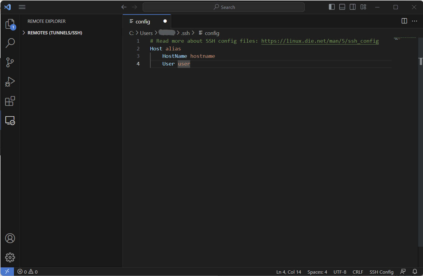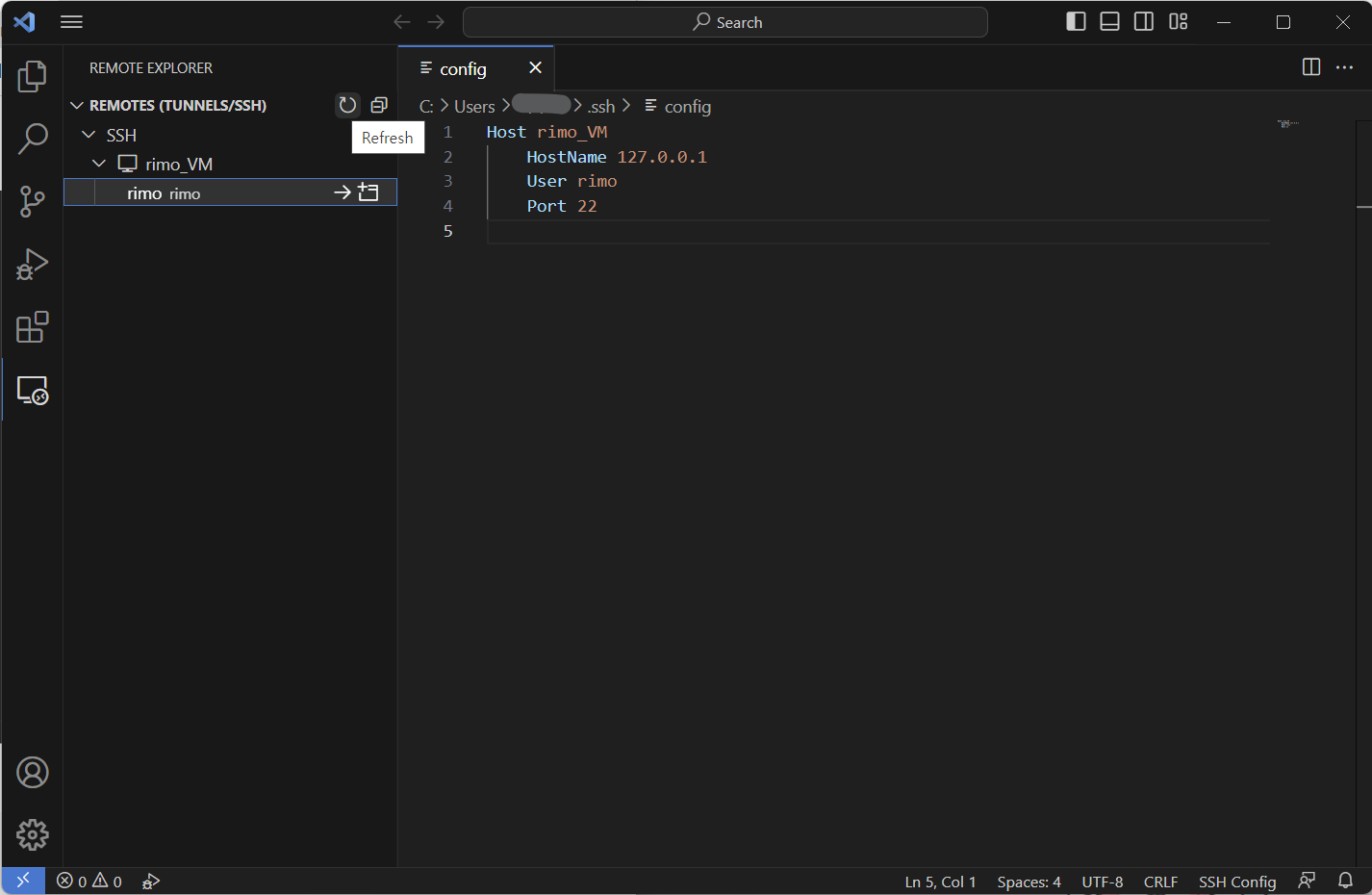 이 파일은 VScode에서 원격 연결과 관련된 설정값을 작성하는 곳입니다.