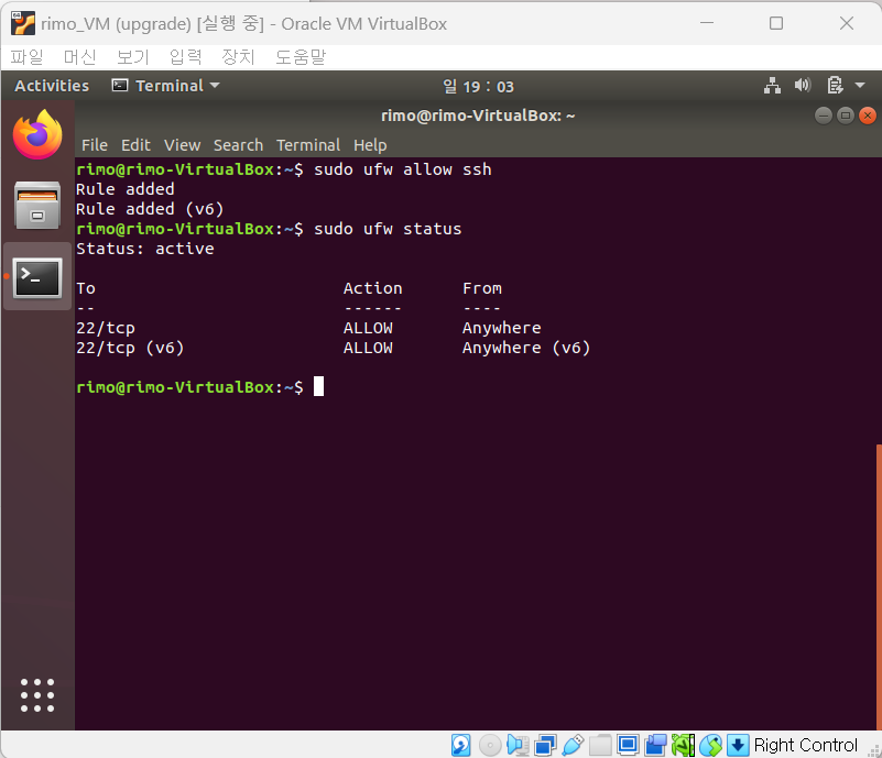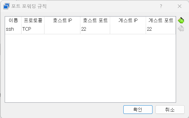 저는 22번 포트를 이용해 rimo계정으로 로컬가상머신에 직접 연결할 것이기 때문에 아래와 같이 적어주었습니다.