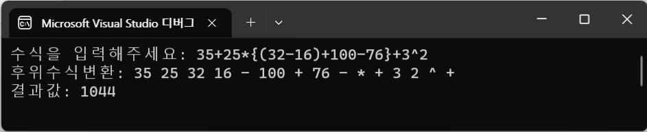+ 과제를 할 당시 추가기능을 구현하기 위해 꽤나 고민을 했던 기억이 납니다. 특히 2자리 수 계산 기능을 구현하는데에 어려움이 있었는데, 저는 후위식으로 변환을 할 때 피연산자를 제외한 토큰들을 삽입한 이후에 띄어쓰기를 하나씩 넣어주는 것으로 이를 해결하였습니다. 때문에 postfix 함수에서 ' '를 pexp에 추가하는 것을 볼 수 있죠. 정말 간단한 방법인데도 떠올리는데에 어려움이 많았네요. 문제에서는 2자리수 계산이 가능하라고 나왔지만 이 방법을 사용해서 2자리 수가 넘어가더라도 계산이 잘 되도록 구현할 수 있었습니다.