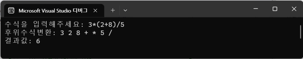 사용자로부터 식은 입력 받아 스택을 사용하여 후위 식으로 변환한 다음 계산하여 출력하는 문제입니다.