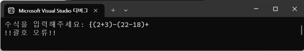 // 짝이 없는 괄호가 스택에 남아있을 때 -> 오류
