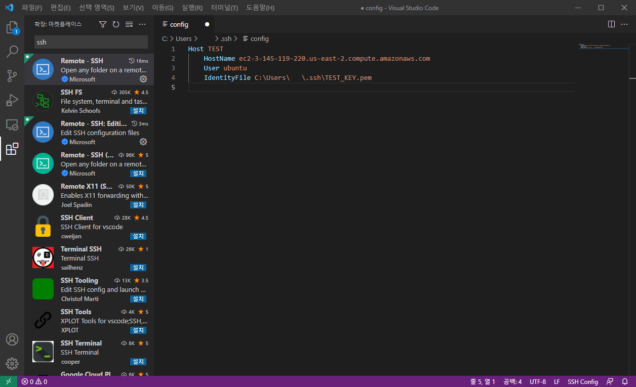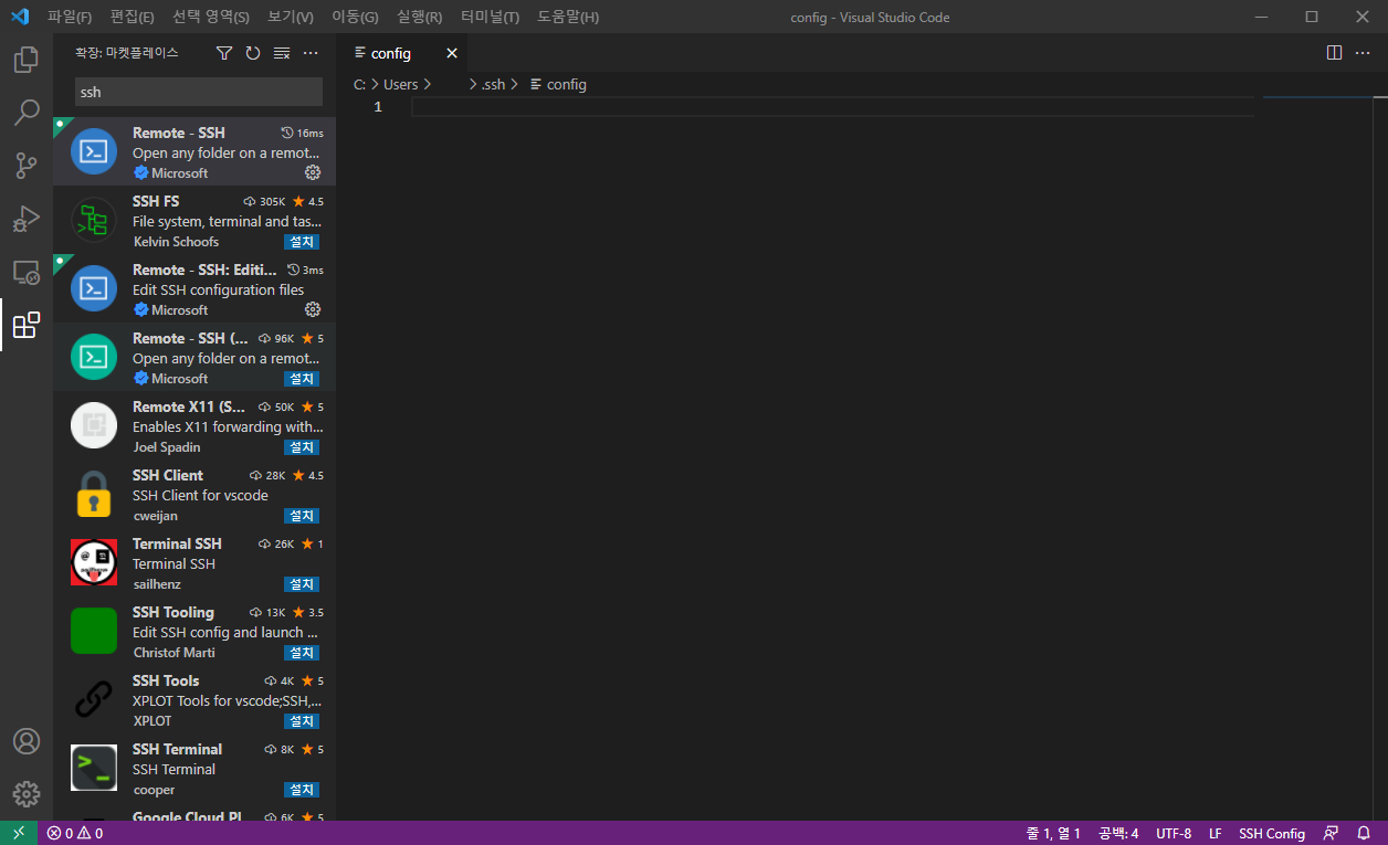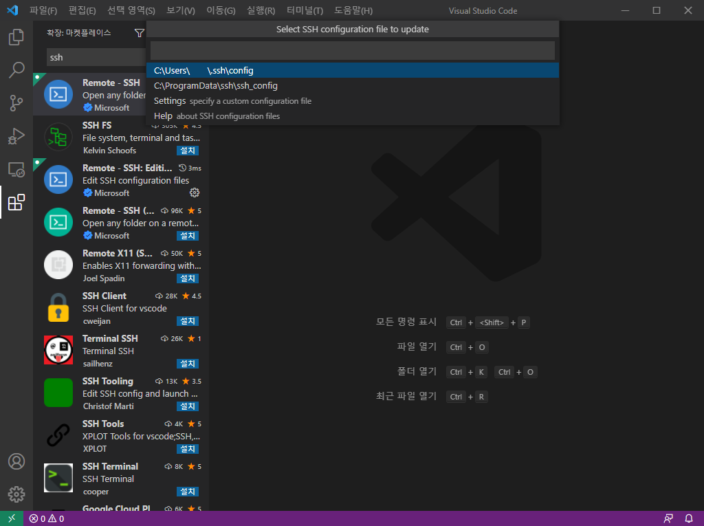 그럼 .ssh\config파일의 경로가 뜰 겁니다.