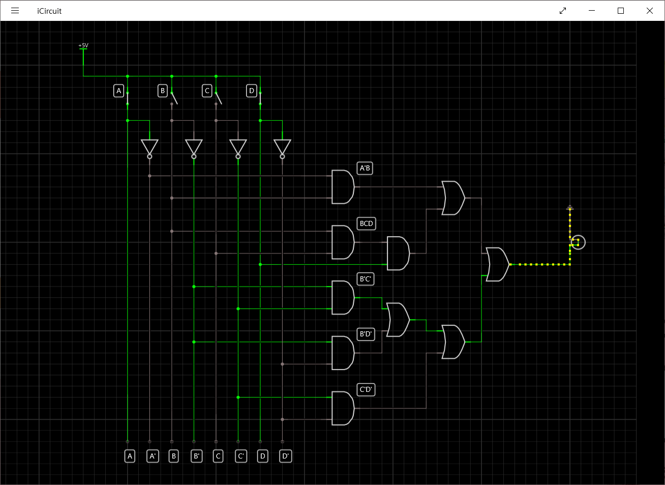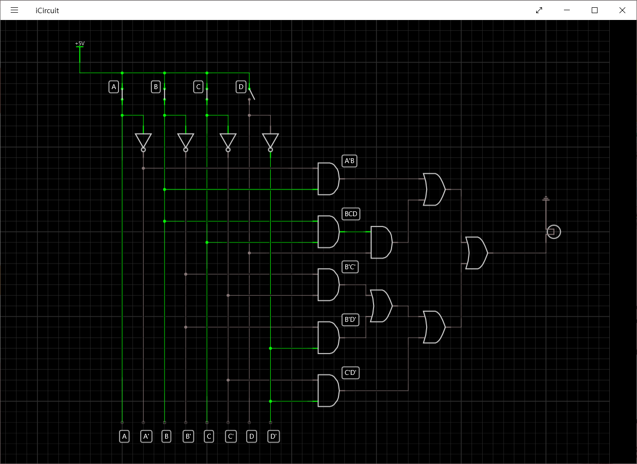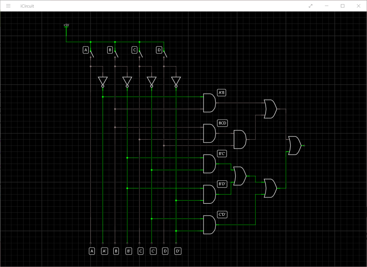 f = A'B + BCD + B'C' + B'D' + C'D'
