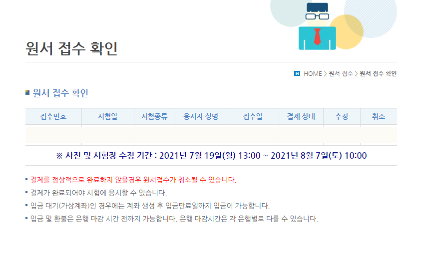 또한 응시를 하기 위해서 120*160px 크기의 본인 확인이 가능한 증명사진이 반드시 필요합니다.