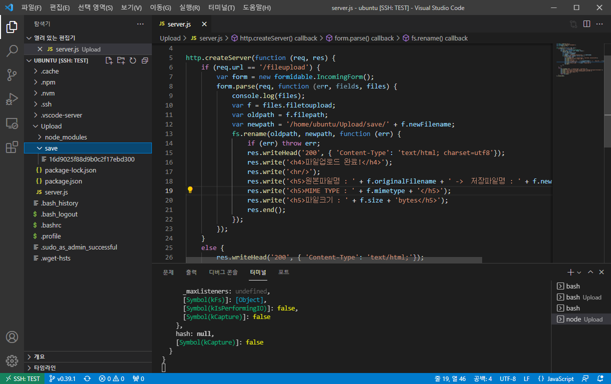 [Node.js] 웹 서버 구축 후 파일 업로드 사이트 만들기