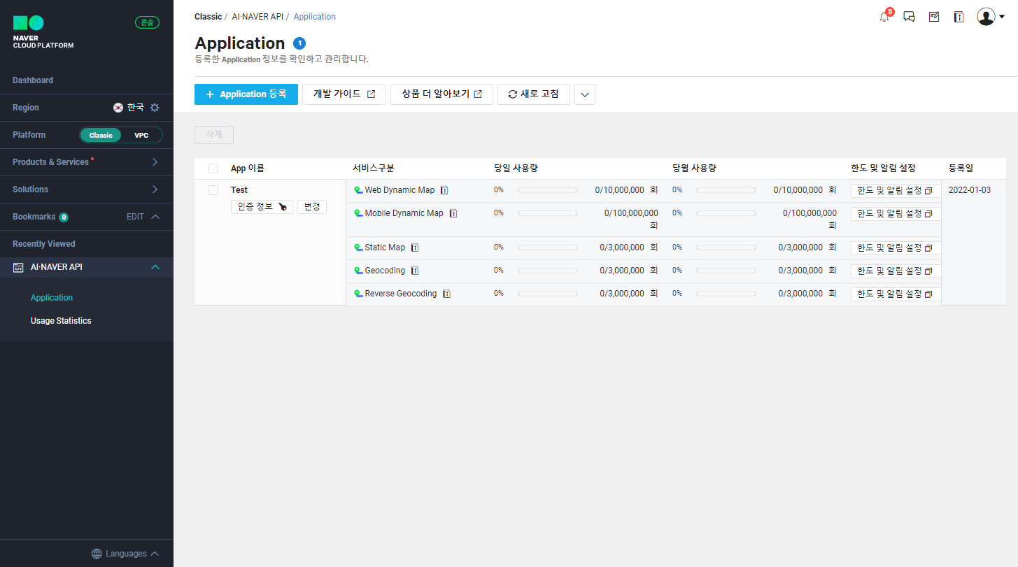 애플리케이션이 등록된 것을 확인할 수 있습니다.