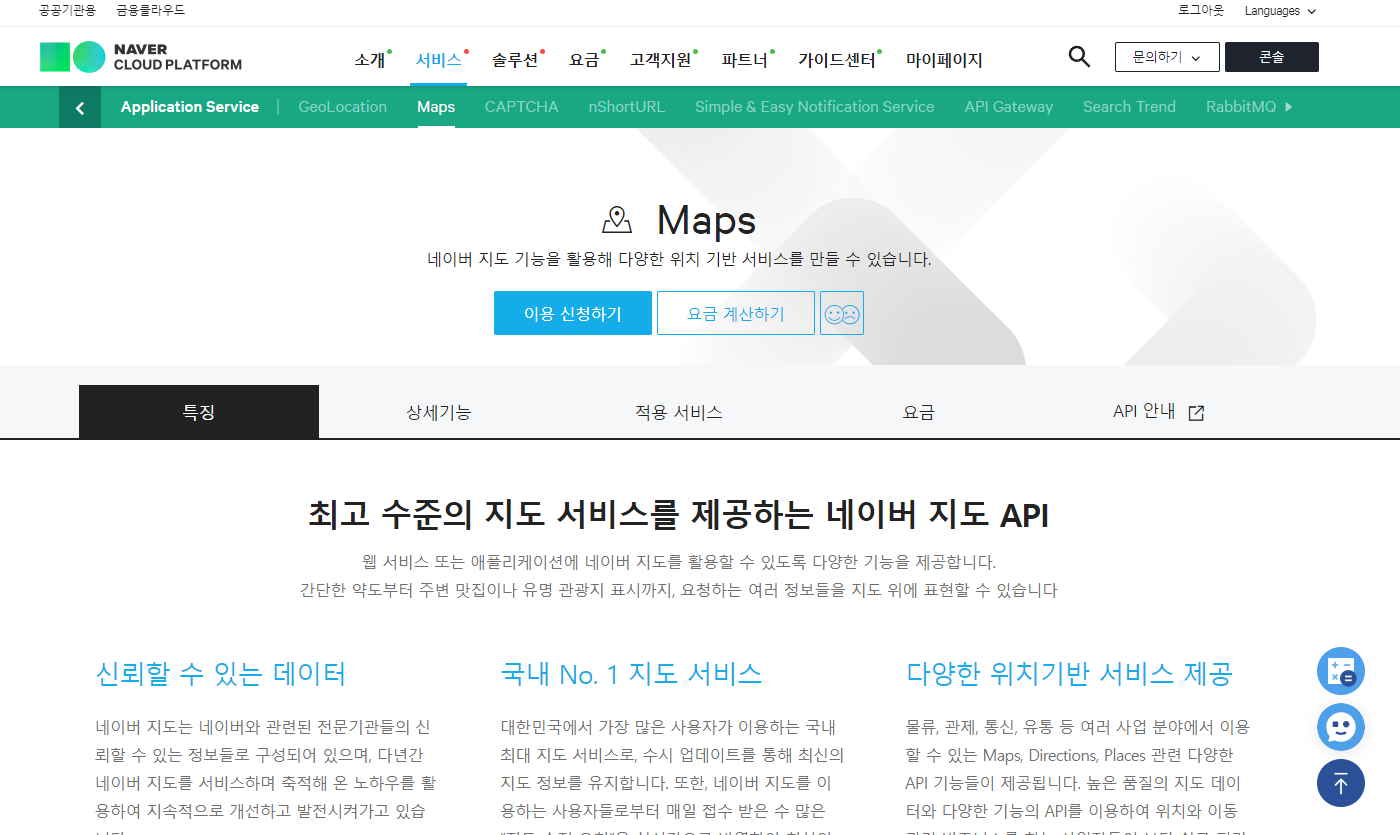 저희는 이중 [네이버 지도 API]를 사용해 보겠습니다.