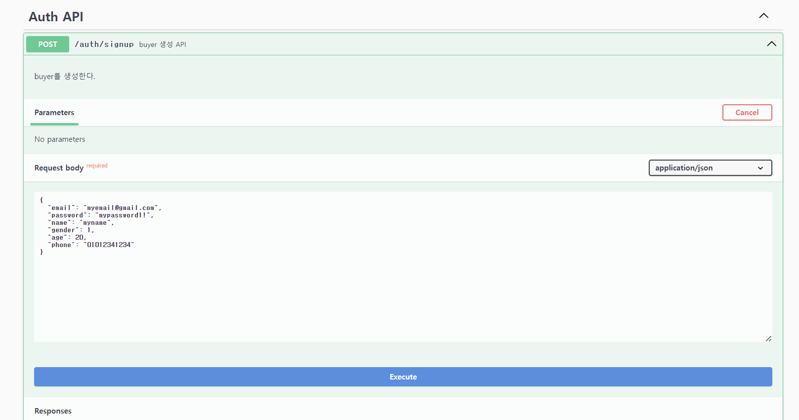 다른 장점으로는 Swagger UI를 통해 작성된 API를 시각함과 동시에, 테스트할 수 있는 화면을 제공한다는 것입니다.