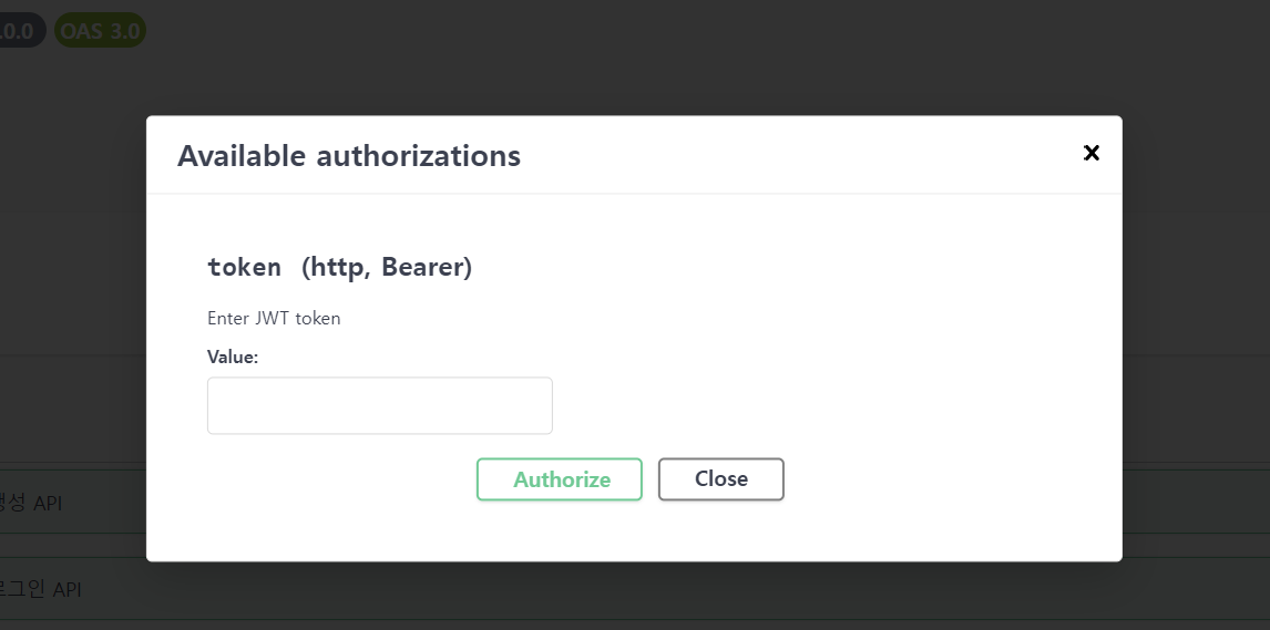 먼저 해당 엔드 포인트에 ApiBearerAuth를 추가합니다. 저는 'token'이라는 이름을 부여했습니다.