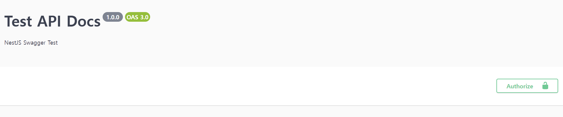 Swagger UI 상단에 Authorize 아이콘이 추가된 것을 확인할 수 있습니다.