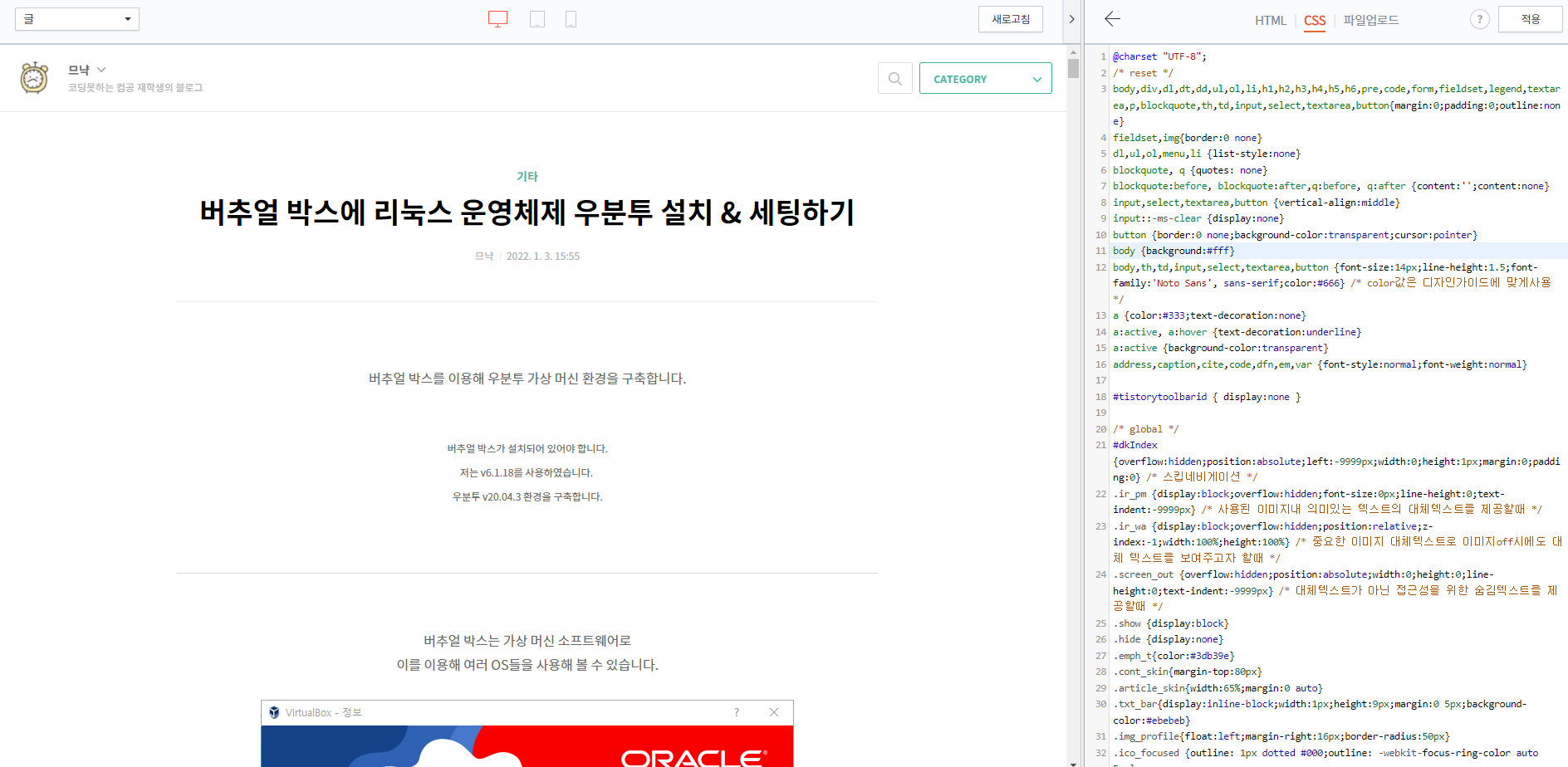 그럼 HTML과 CSS를 편집할 수 있도록 편집기가 열립니다.