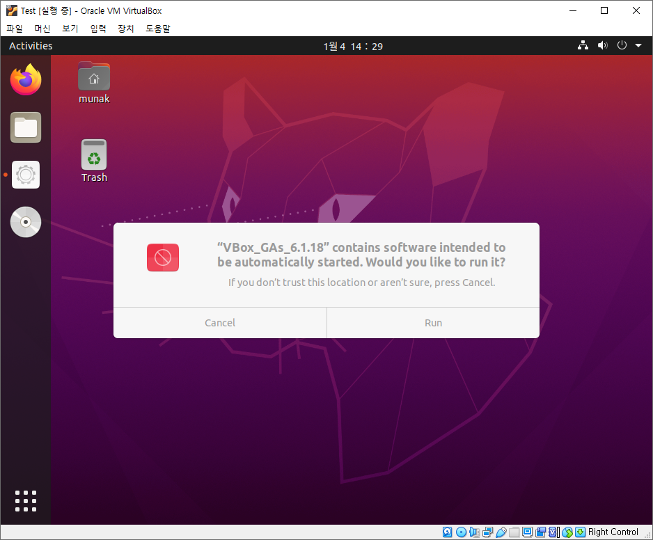 그럼 아래와 같이 대화상자가 나타날 겁니다. [Run]을 눌러줍니다.
