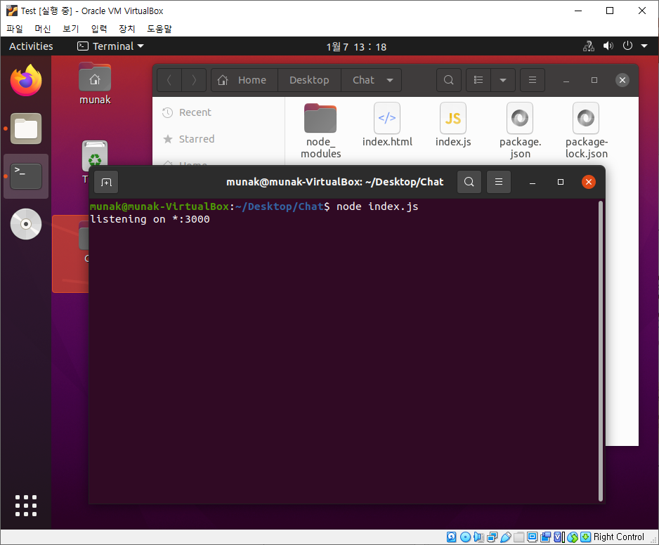 정리하면, Express로 3000번 포트의 웹서버를 열고, Socket.IO로 확장시켜