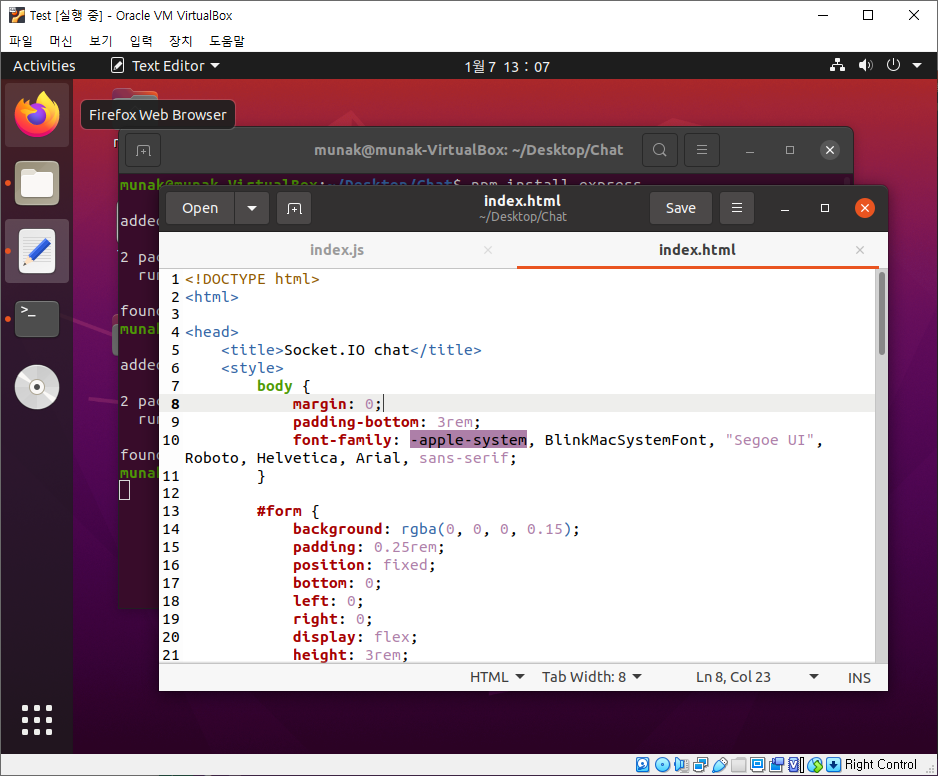 Node.js에서 많이 쓰이는 express 모듈을 사용해 간단한 웹 서버를 열어보겠습니다. Node.js v16.13.1 npm v8.3.0을 기준으로 작성된 글입니다. 버추얼 박스 우분투 가상머신에서 진행합니다. 버추얼 박스