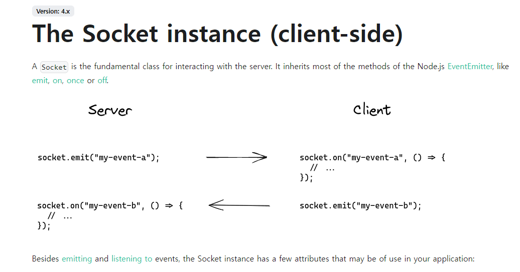 앞서 Socket.IO를 소개할 때 이벤트 기반의 양방향 통신을 지원한다고 했었습니다.