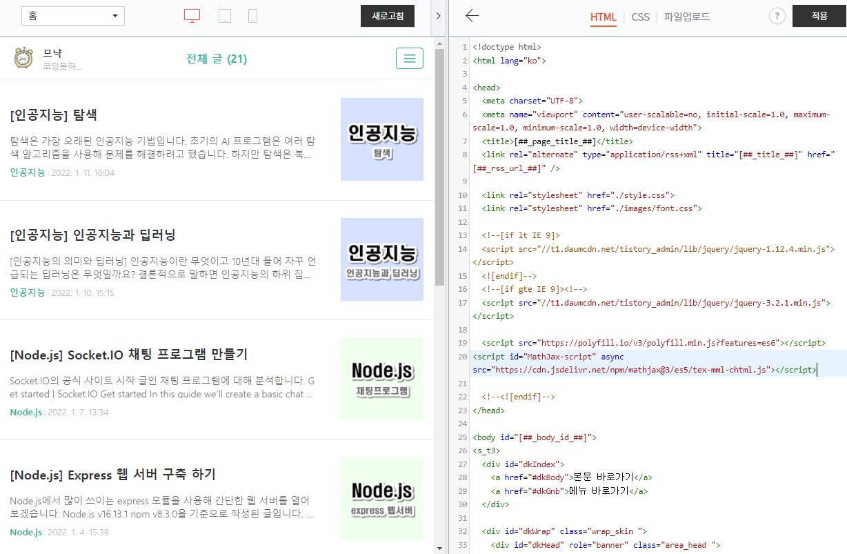 MathJax를 이용해 티스토리 블로그에 수식을 넣는 방법을 설명합니다.