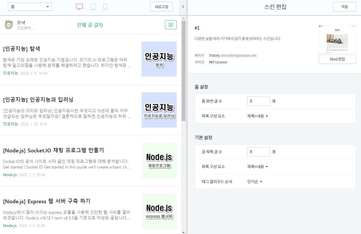그럼 다음과 같은 스킨편집창이 켜질 겁니다.