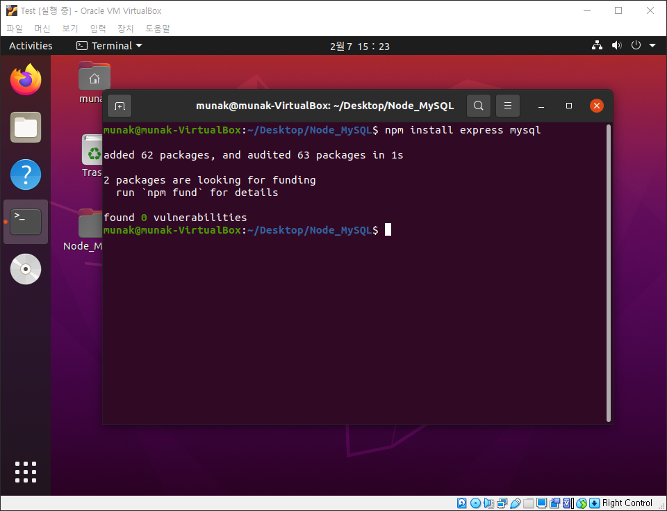 저는 Node_MySQL로 이름을 정했습니다. ㅎㅎ