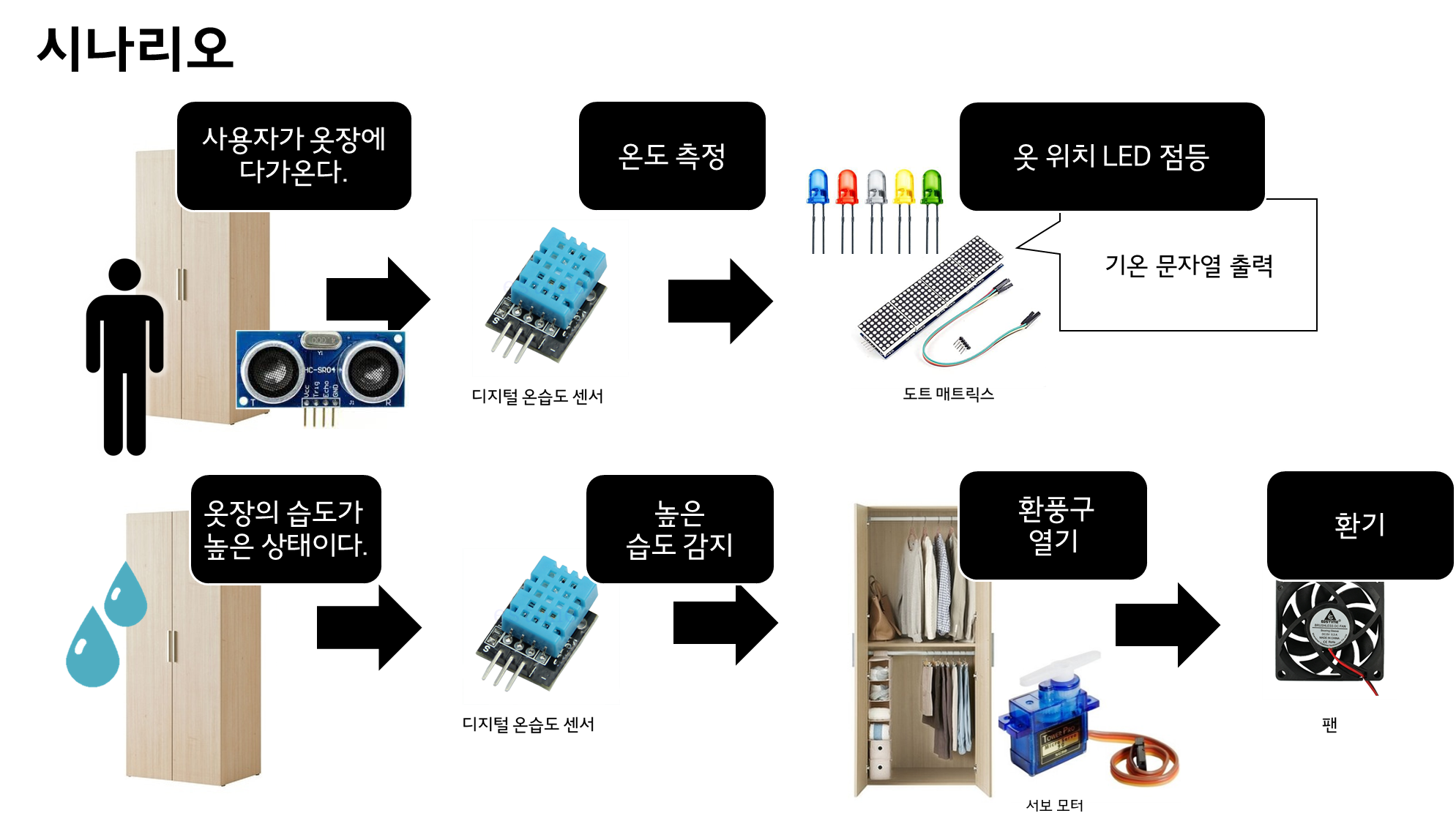 디지털 온습도 센서, 서보모터는 라이브러리를 사용했습니다.