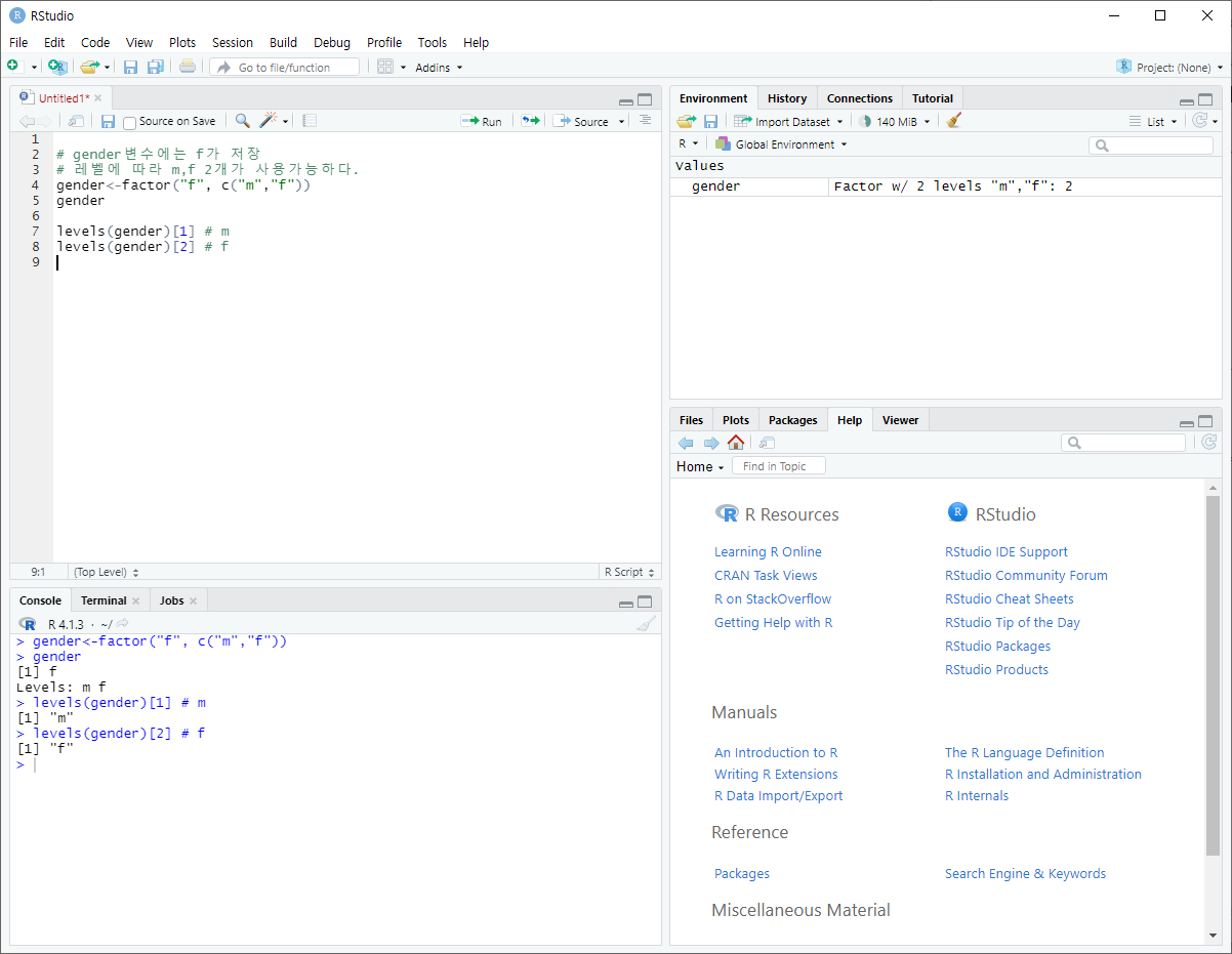- R에서 범주형 데이터는 factor(요인형)을 사용해 표현한다.