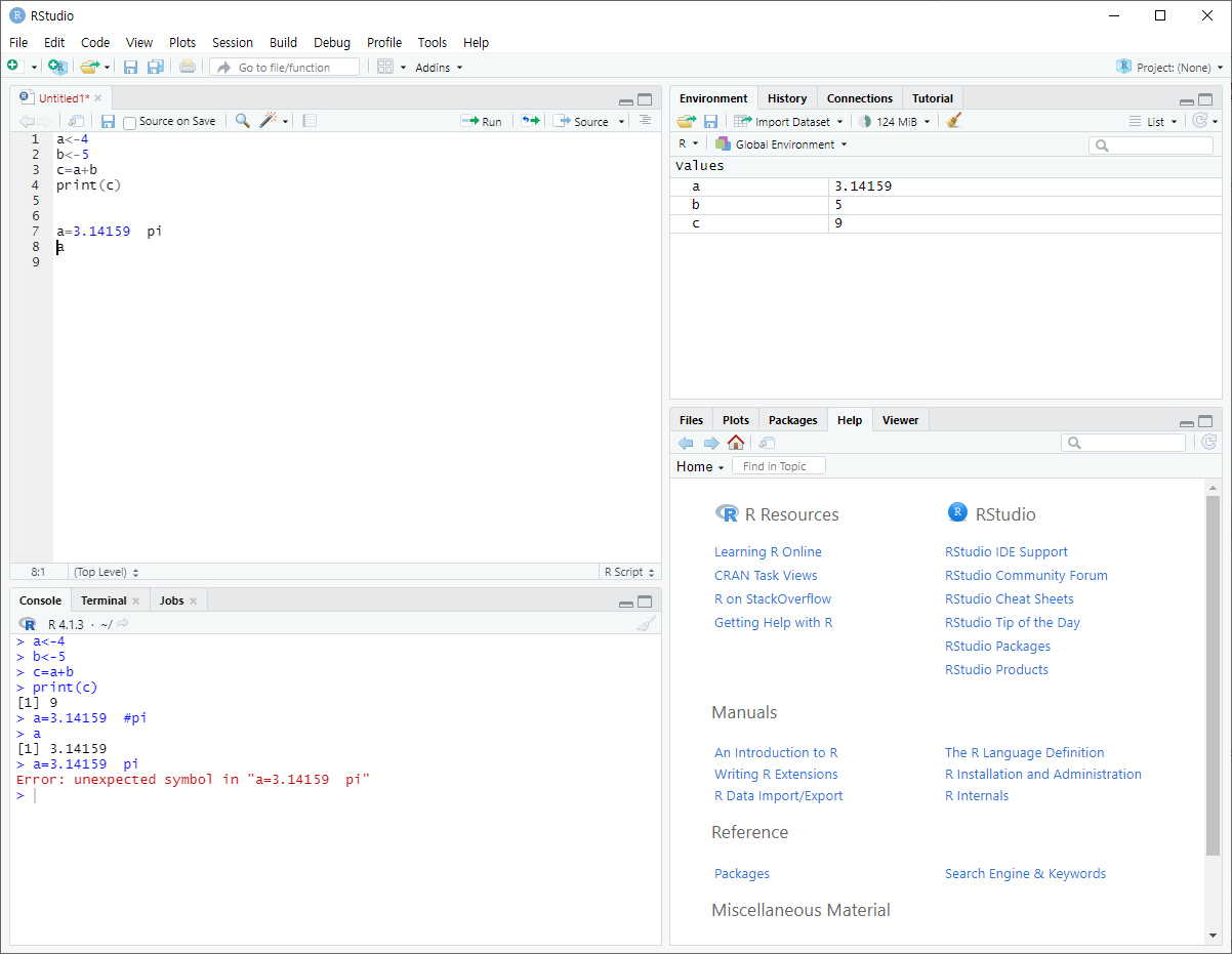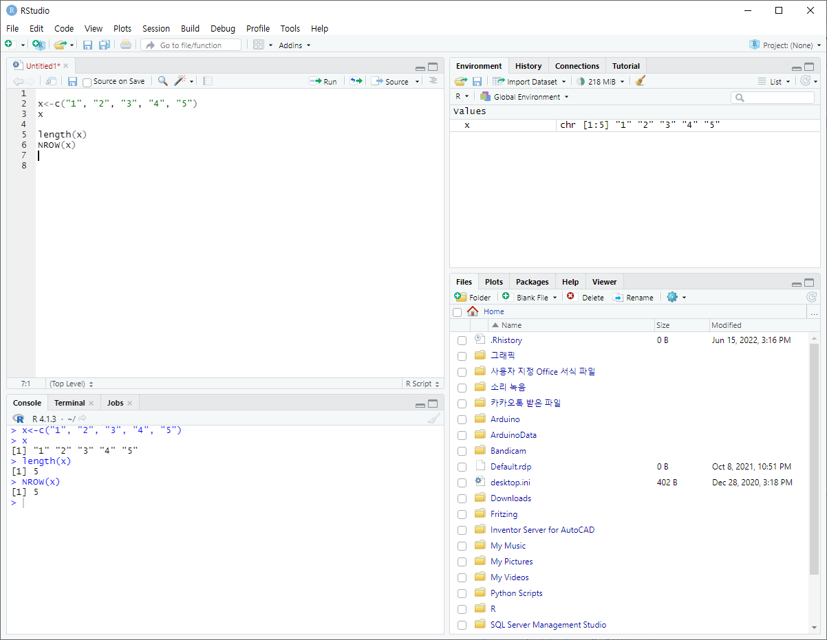 + 예약어기 때문에 TRUE와 FALSE는 변수명으로 사용불가능하다.