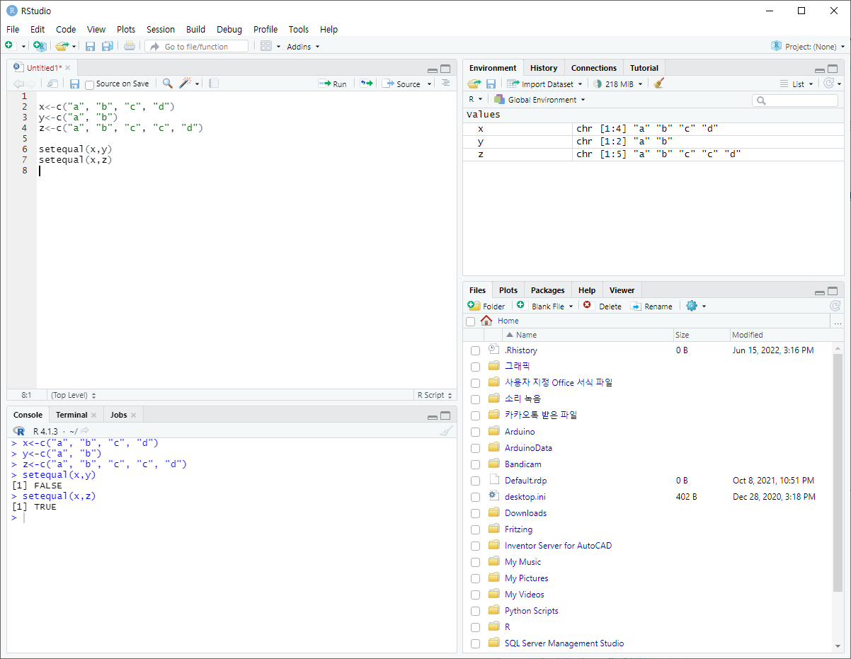 - setequal( )