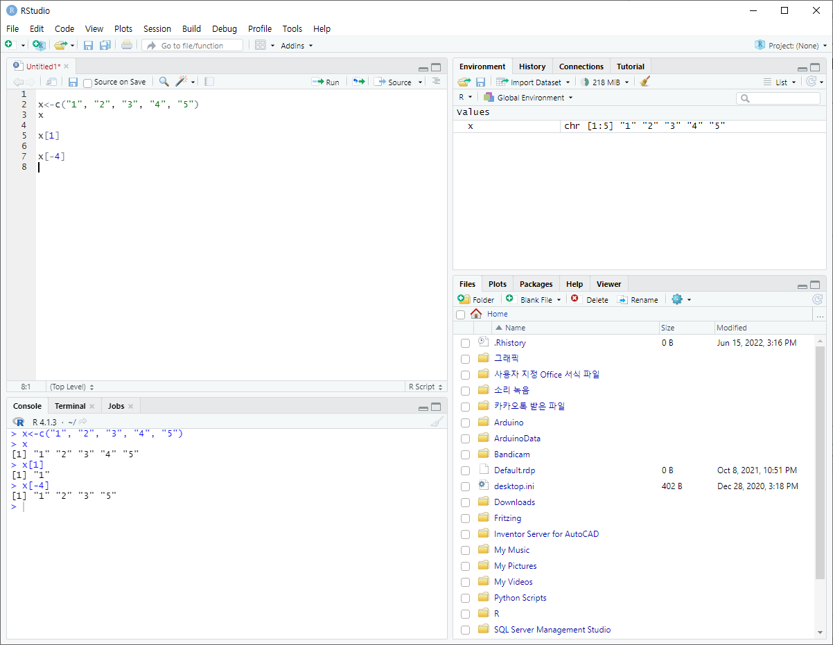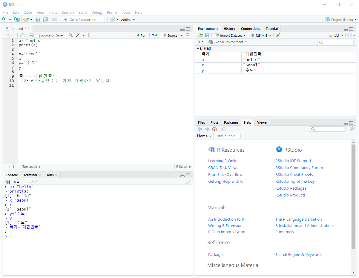 - R은 일반적인 프로그래밍 언어에서 사용되는 정수, 부동소수, 문자열 등을 지원한다.