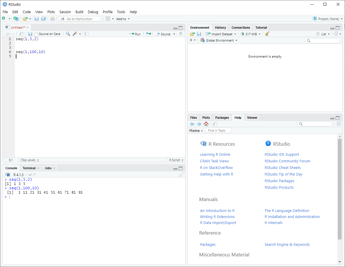 - seq(시작값, 종료값, 간격)