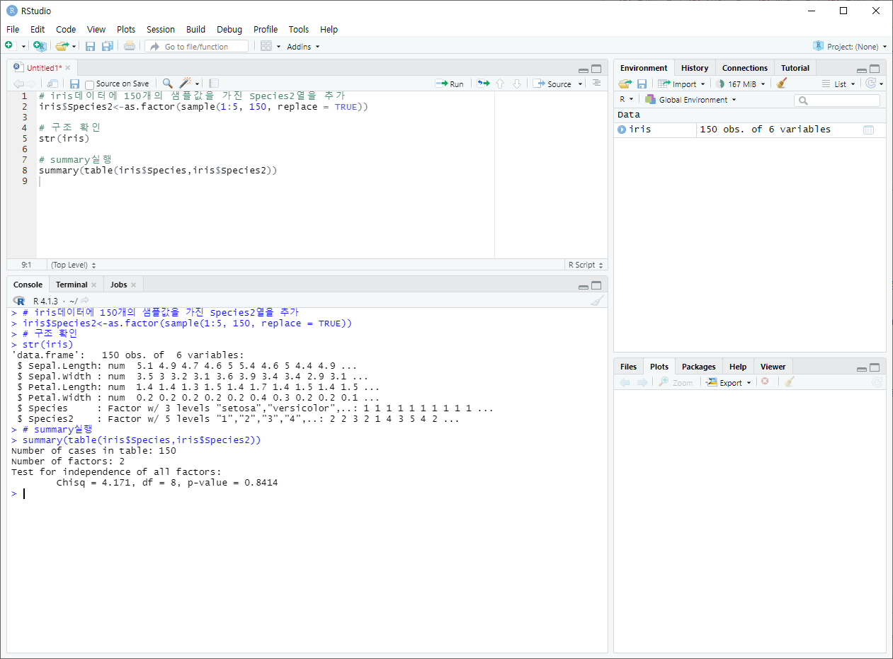 + summary를 이용한 범주형 변수의 독립성 검정