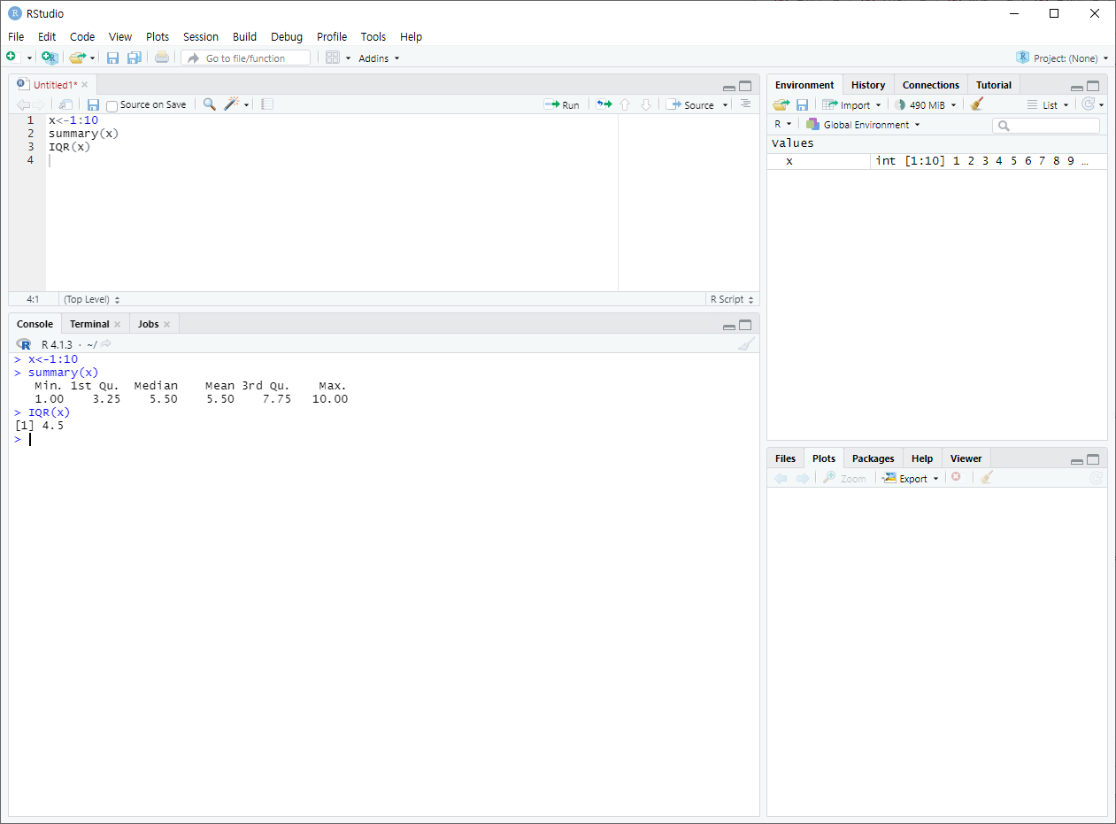 이둘은 다른 식을 사용해 제1사분위수와 제3사분위수를 계산하기 때문에 결과에 차이가 있을수 있다. 실무에서는 summary를 주로 사용한다고 한다.