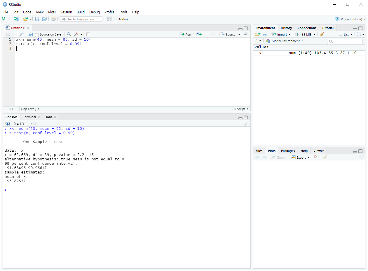 t 검정(모평균 검정)을 실행한다.