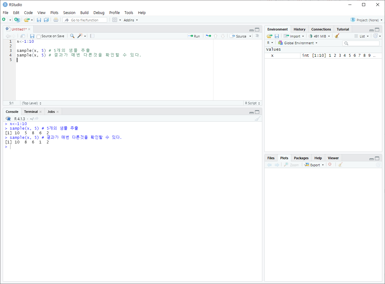 - sample( 데이터, 표본크기, ... )