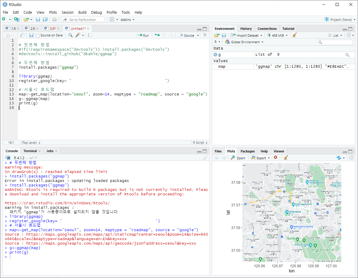 ggmap 설치 및 사용하기