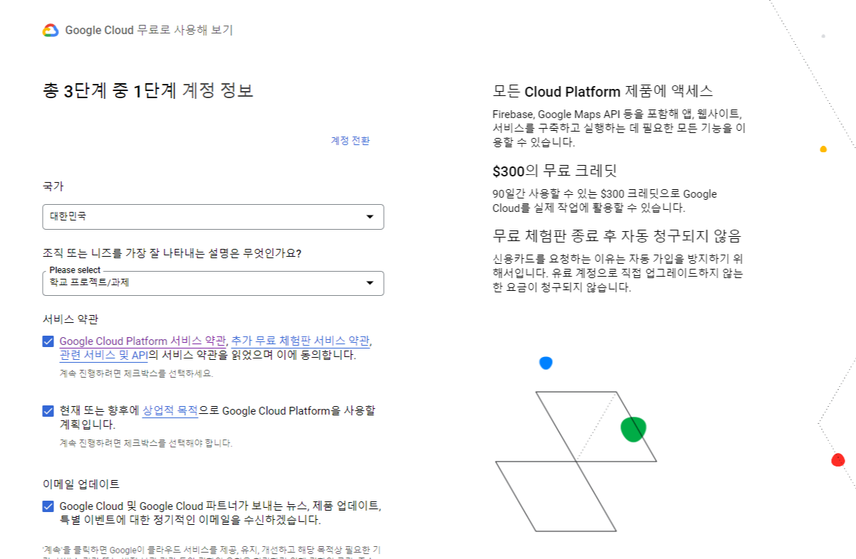 절차에 따라 가입합니다. 저는 학교프로젝트/과제 목적을 선택하고 가입하였습니다.