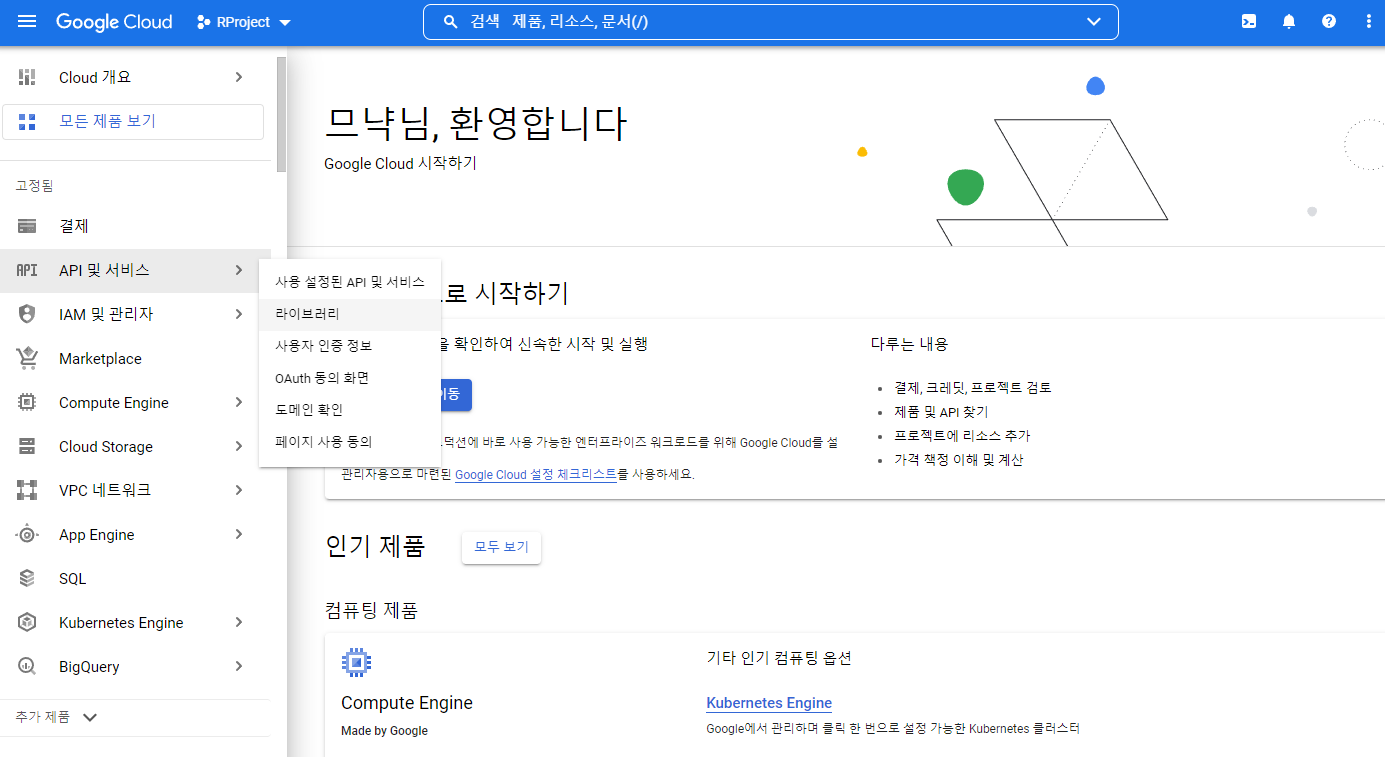 사이드바에서 [API 및 서비스]-[라이브러리]를 선택합니다.