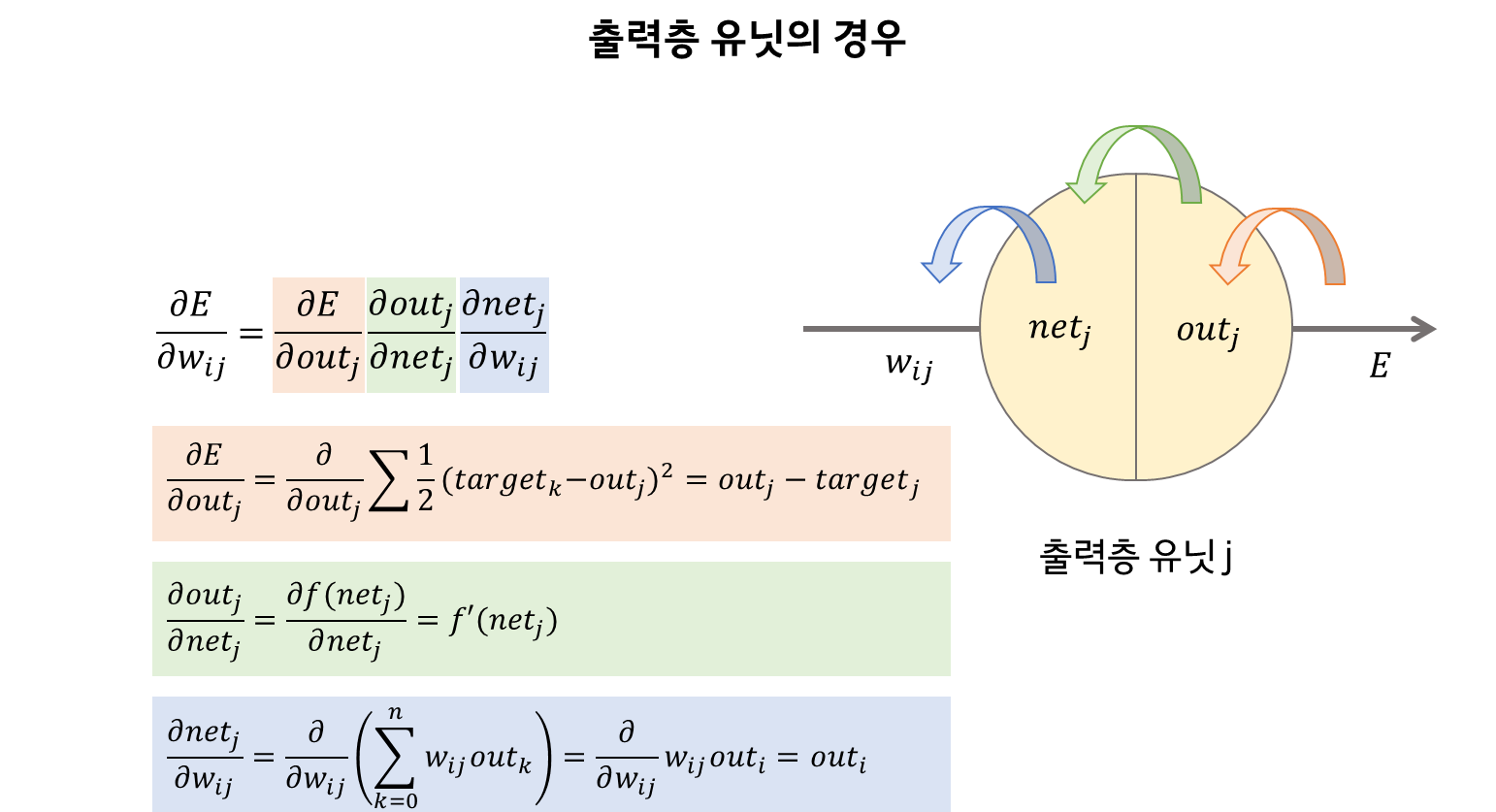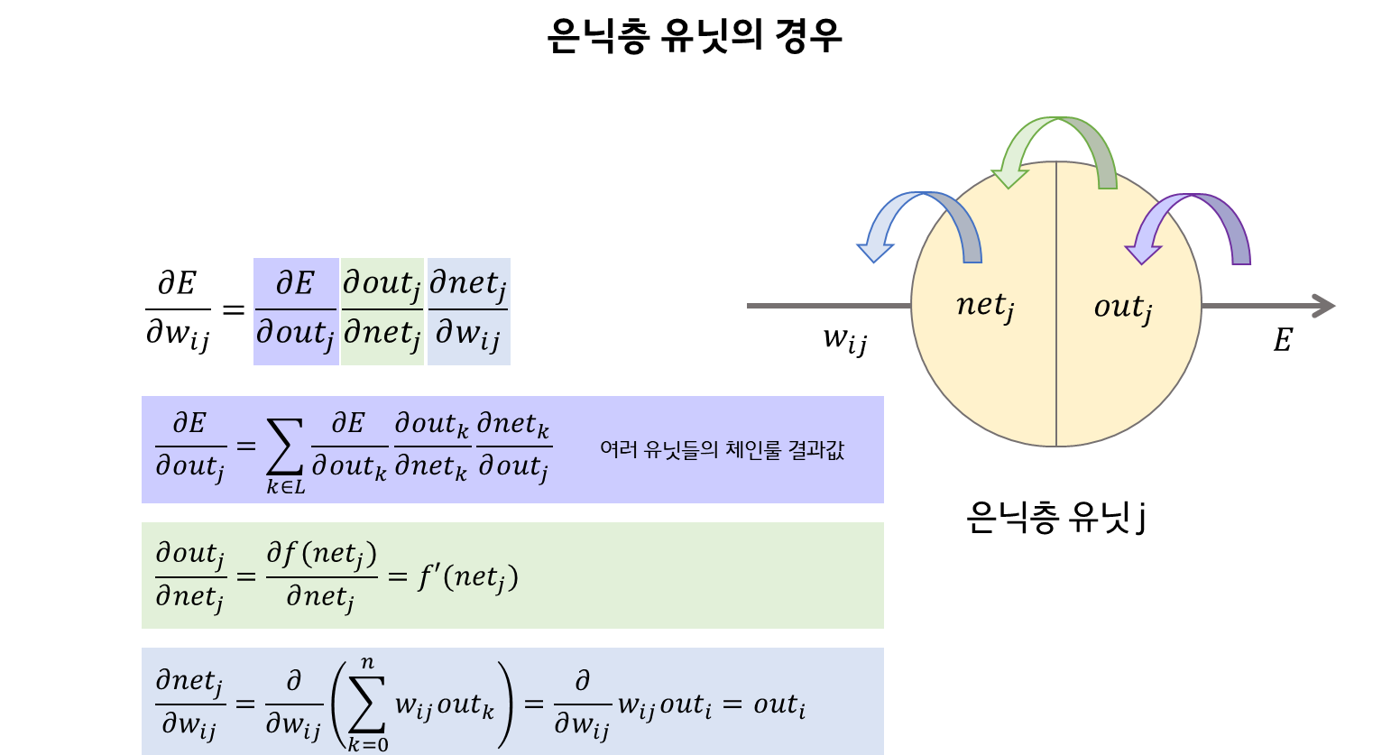 오차를 이용해 신경망의 가중치와 바이이어스 값을 변경한다.