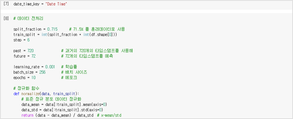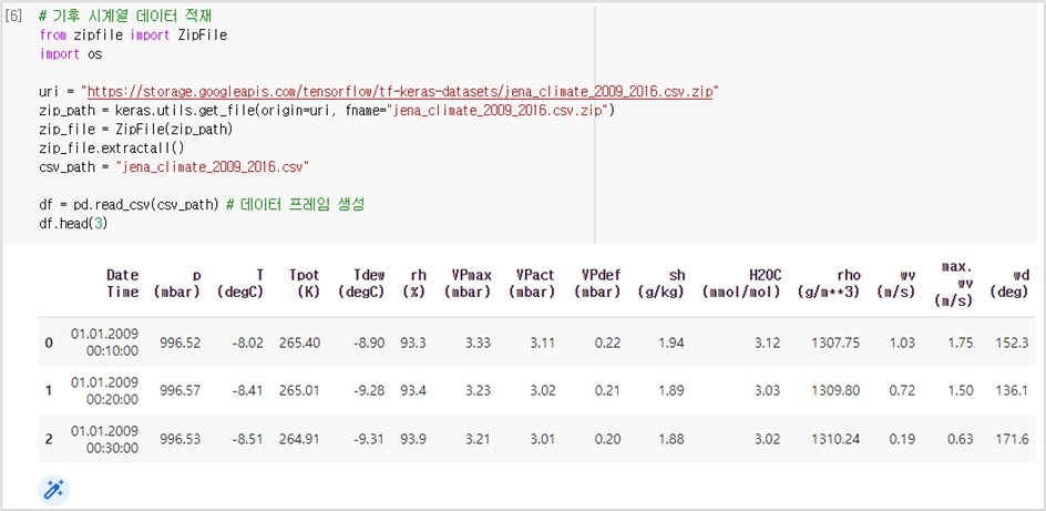 10. 날씨 데이터를 LSTM으로 처리하는 프로그램을 작성해보자. 사용하는 데이터 세는 Max Planck Institute for Biogeochemistry에서 기록한 Jena Climate 데이터 세트이다. 데이터 세트는 온도, 압력, 습도 등 14가지 특징으로 구성되며 10분에 한번씩 기록된다. https://keras.io./examples/timeseries/를 참조한다.