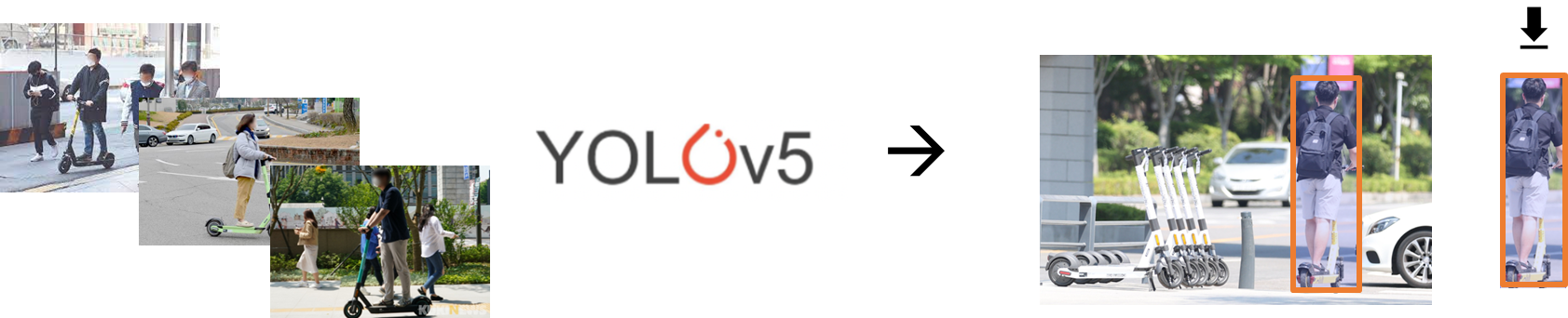 1. Yolov5를 이용해 전동 킥보드 탑승 이미지를 학습시켜, 모델을 구축한다.
