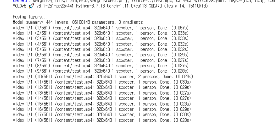 그리고 다시 한번 detcet.py를 이용해 영상에 모델을 적용하였다.