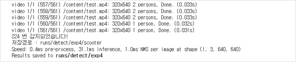 모든 예측후에 감지 횟수와 저장 경로를 출력하도록 print문을 작성하였다.
