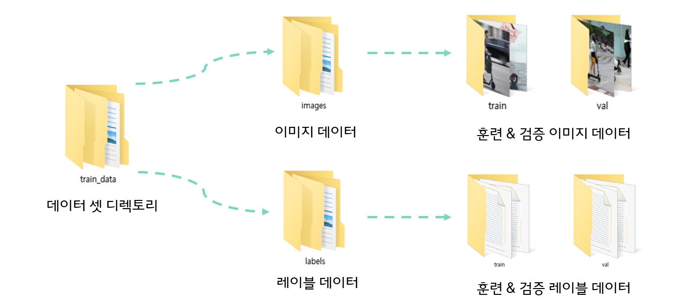 이를 압축 해제한 후 train_data 하위의 훈련데이터 레이블 폴더 labels/train과 테스트 데이터 레이블 폴더 labesl/val에 각각 배치한다.