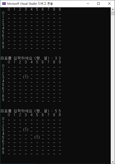 printf("좌표를 입력하세요 (행, 열) : ");